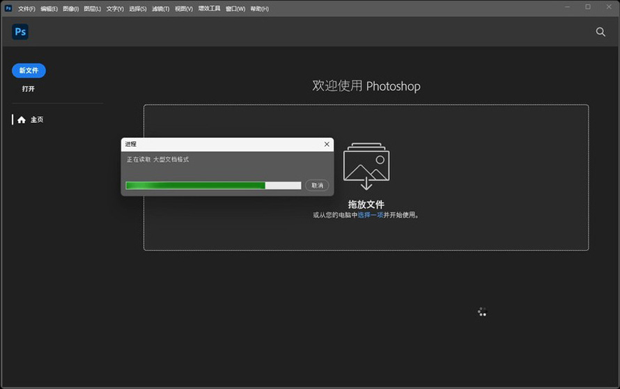生产力程序体验,我们使用Photoshop 2026,把NASA星空图(24.6GB)拖到PS中进行加载读取,并显示出画面的第一帧的所需时间,后续渲染时间不计入统计。