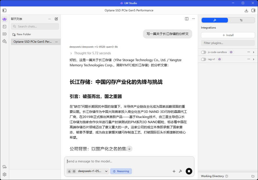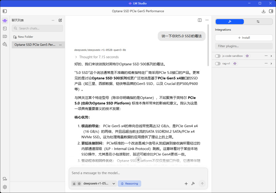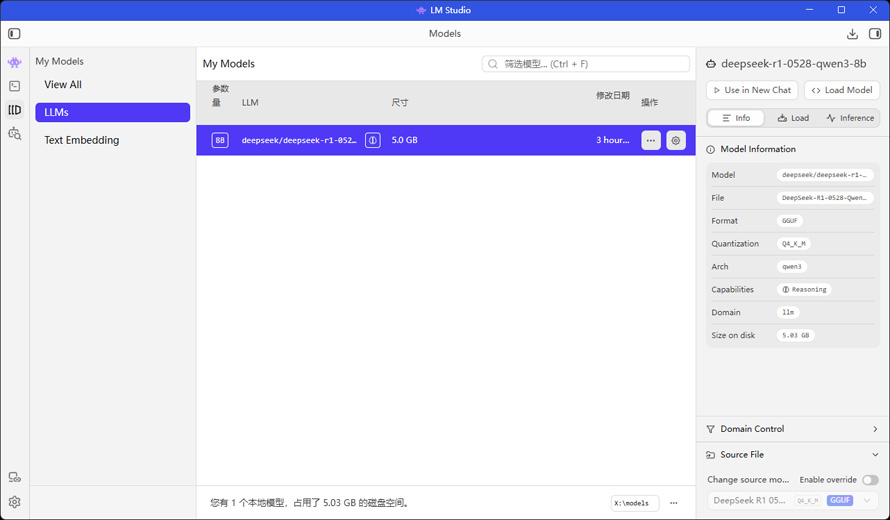 我们先使用LM Studio在PC550 2TB上部署一个DeepSeek-R1-0528-Qwen3-8B本地轻量级推理模型。