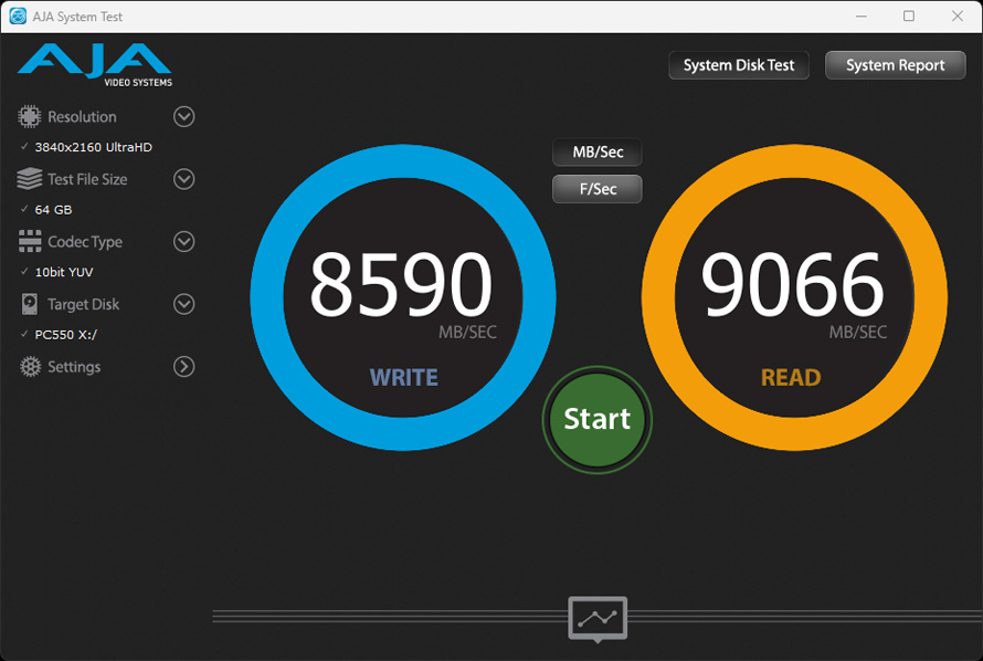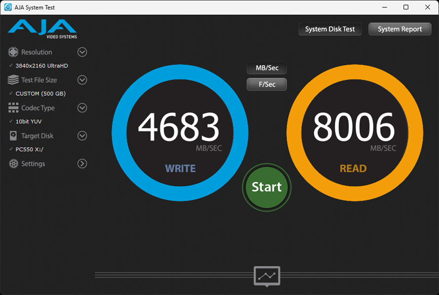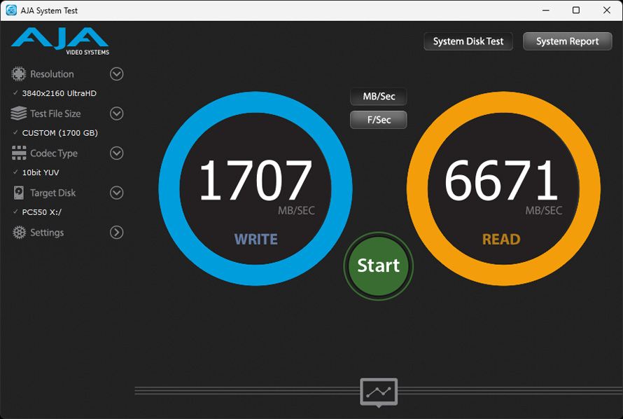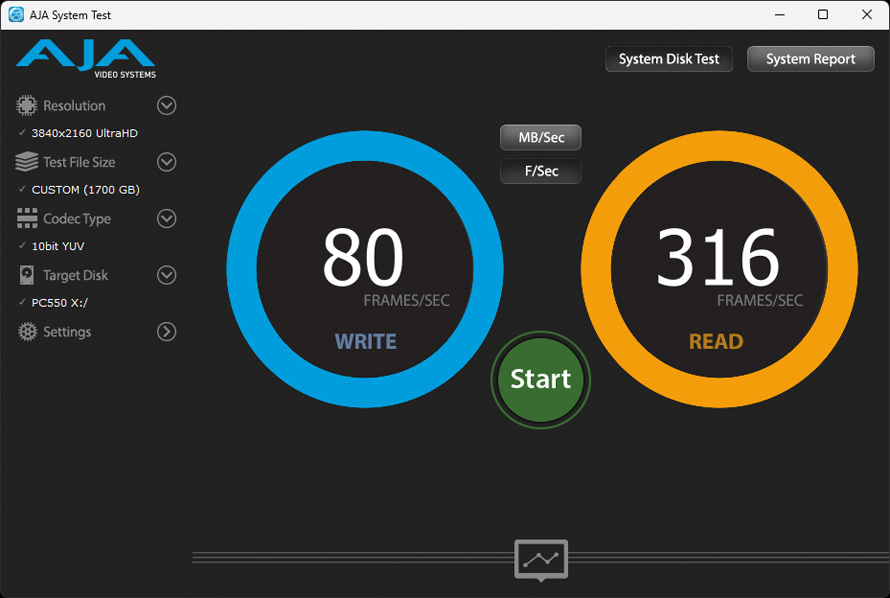 AJA System Test,视频生产力测试软件,用于评估SSD是否满足4K视频制作与后期工作的性能需求。