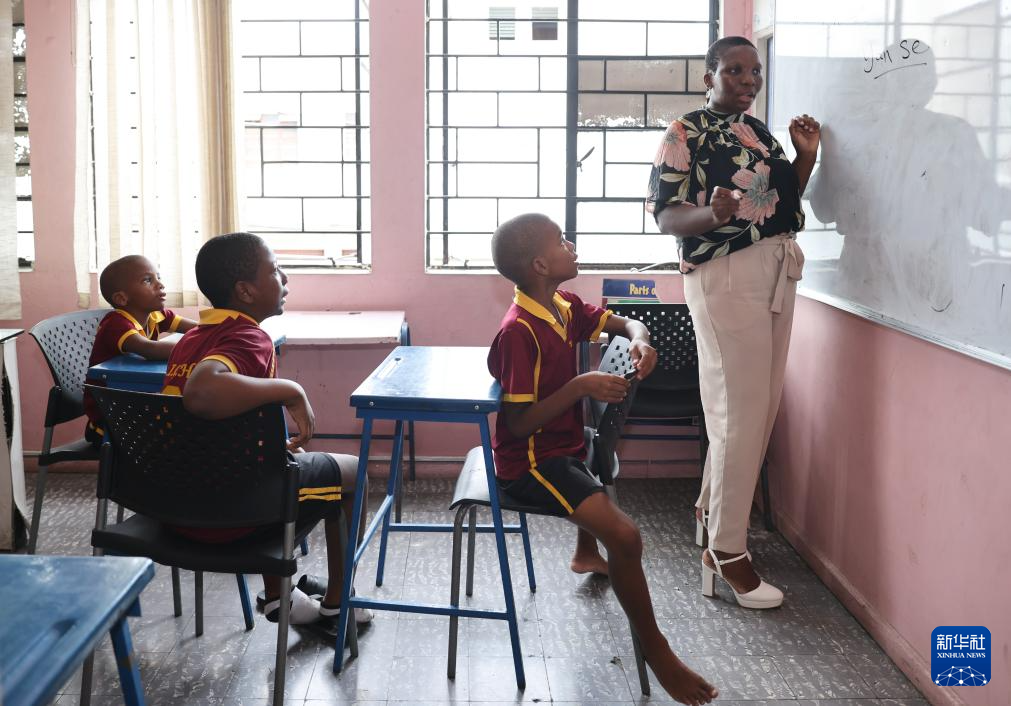 9月4日股票配资的公司行业门户,在牙买加首都金斯敦艾特特殊教育小学,校长娜塔莎·拉塞尔在授课。新华社记者 李梦馨 摄